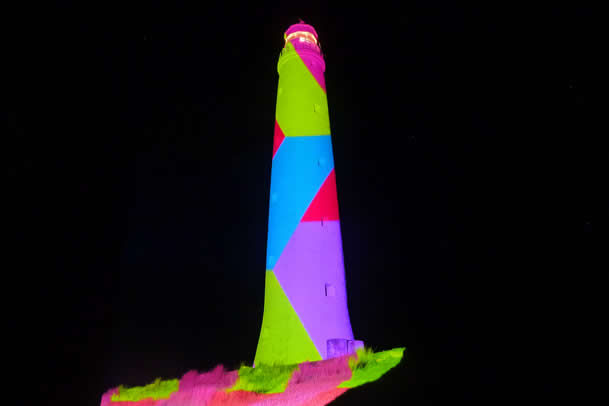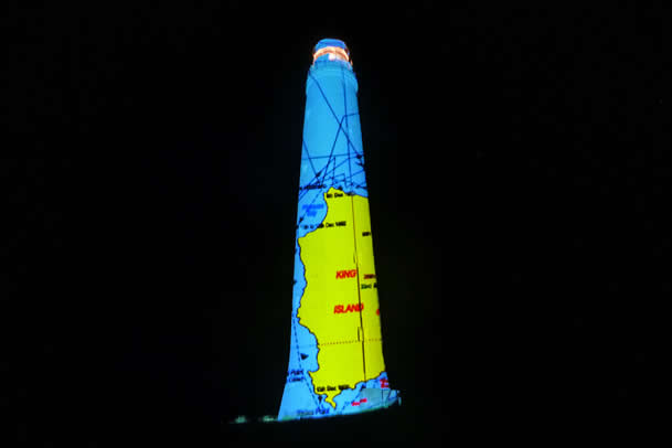 Olaf Meyer was commissioned in 2011 to projection map the Cape Wickham lighthouse. Meyer created a 10 minute animation to a soundtrack made by the King Island secondary college under direction of composer John Salzman. Members of the public broke into tears at the beauty of the lighthouse when the images were projected. The images included local children dressed as lighthouses, architecturally fitted projection mapped animation of the lighthouse’s form and images of historical artifacts, names and people associated with the building’s past.
