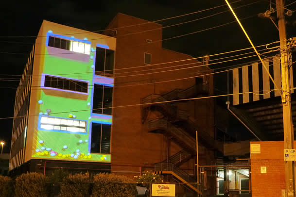 Olaf Meyer was commissioned by the city of Yarra to produce an architectural projection mapped show for Victoria Park. The installation is commissioned for two years and Olaf Meyer will be supporting other artists through the city council to produce other work. Meyer’s work is the first in a series of works that will displayed in this 2 year long public art site, specifically dedicated to projection art. Multimedia event installed and maintains this site for the council which uses Barco projection equipment and automation equipment designed by Multimedia Events.